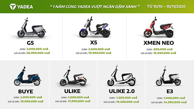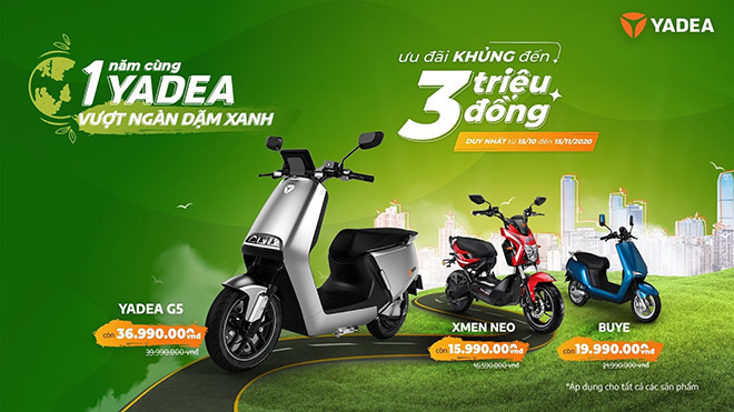 YADEA Việt Nam công bố chương trình “1 năm cùng YADEA vượt ngàn dặm xanh” có tổng ưu đãi lên đến 50 tỷ đồng hấp dẫn chưa từng có khi mua xe máy điện YADEA từ 15/10 đến 15/11/2020, với thông điệp đồng hành cùng hàng triệu người dùng Việt lan tỏa lối sống xanh nhằm giảm thiểu ô nhiễm không khí.