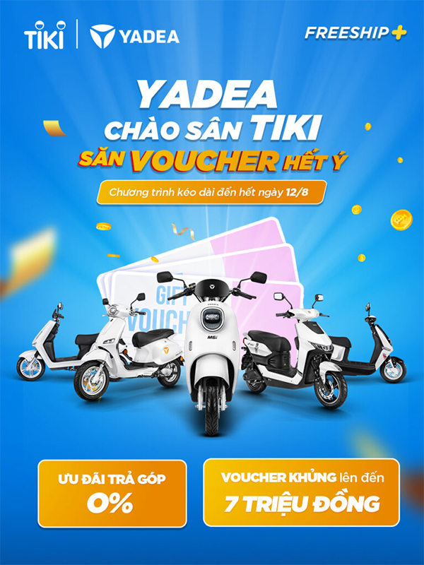 Siêu ưu đãi giảm giá lên tới 7,5 triệu đồng chỉ có tại Yadea Offical Store trên TIKI. Mua sắm tại cửa hàng chính hãng nay còn được tặng kèm hàng loạt voucher khủng.